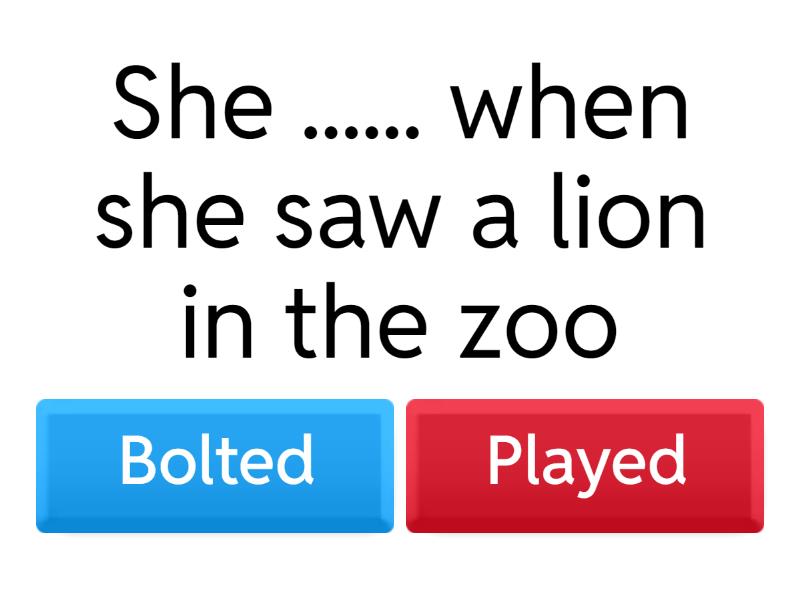 1) She ...... when she saw a lion in the zoo a) Bolted b) Played 2) She had to ............. her car during the flood a) abandon b) start 3) He was a victim of emotional ........ a) damage b) abuse 4) That guy is such a ...... a) sigma b) creep 5) They had to ...... the country during the war a) bomb b) flee 6) She ........ the switch a) pulled b) flicked 7) He ............ when the ball flew toward his face a) ran b) flinched 8) She won the 100-meter ...... a) sprint b) race 9) The ....... was caught stealing state secrets. a) spy b) judge 10) He ......... all his inheritance on gambling. a) squandered b) spent