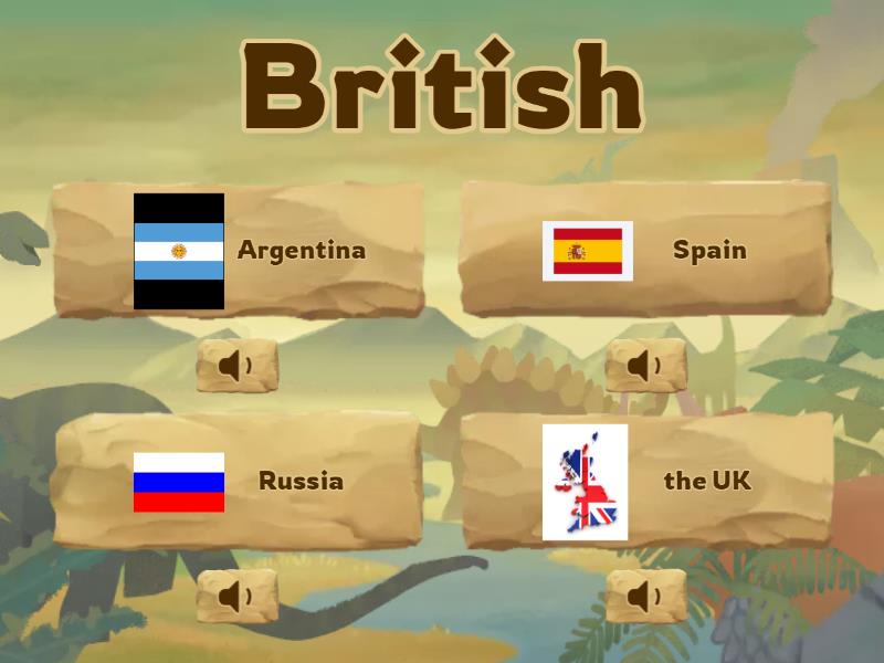 1) British a) Argentina b) Spain c) Russia d) the UK 2) Russian a) France b) Turkey c) the UK d) Russia 3) Spanish a) Germany b) the USA c) China d) Spain 4) French a) France b) China c) the UK d) Italy 5) Polish a) China b) Poland c) the UK d) Argentina 6) Chinese a) the UK b) Poland c) France d) China 7) Italian a) Argentina b) Spain c) Italy d) Poland 8) Argentinian a) France b) Turkey c) Argentina d) the UK 9) American a) China b) the USA c) Turkey d) Germany 10) German a) Germany b) Turkey c) France d) the UK 11) turkish a) Argentina b) the USA c) China d) Turkey