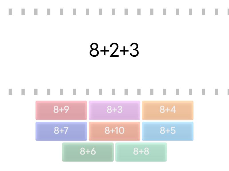 8+5 - 8+2+3, 8+9 - 8+2+7, 8+4 - 8+2+2, 8+6 - 8+2+4, 8+3 - 8+2+1, 8+7 - 8+2+5, 8+8 - 8+2+6, 8+10 - 8+2+8,