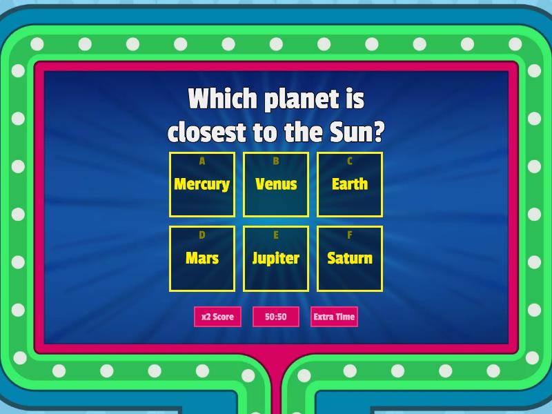 1) Which planet is closest to the Sun? a) Mercury b) Venus c) Earth d) Mars e) Jupiter f) Saturn 2) Which planet is known as the Red Planet? a) Mercury b) Venus c) Earth d) Mars e) Jupiter f) Saturn 3) Which planet is the largest in our solar system? a) Mercury b) Venus c) Earth d) Mars e) Jupiter f) Saturn 4) Which planet is known for its rings? a) Mercury b) Venus c) Earth d) Mars e) Jupiter f) Saturn 5) Which planet is known as Earth's twin? a) Mercury b) Venus c) Earth d) Mars e) Jupiter f) Saturn 6) Which is the smallest dwarf planet? a) Pluto b) Ceres c) Eris d) Haumea e) Makemake f) Sedna 7) Which planet has the Great Red Spot? a) Mercury b) Venus c) Earth d) Mars e) Jupiter f) Saturn 8) Which dwarf planet was once considered the ninth planet? a) Pluto b) Ceres c) Eris d) Haumea e) Makemake f) Sedna