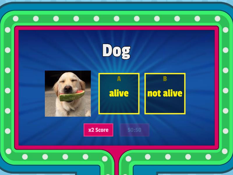 1) Dog a) alive b) not alive 2) Robot a) alive b) not alive 3) Human a) alive b) not alive 4) Shark a) alive b) not alive 5) Flower a) alive b) not alive 6) Doll a) alive b) not alive 7) Clock a) alive b) not alive 8) Car a) alive b) not alive 9) Ball a) alive b) not alive 10) Bird a) alive b) not alive 11) Rock a) alive b) not alive 12) Tree a) alive b) not alive 13) Rubber a) alive b) not alive 14) Lion a) alive b) not alive 15) Mushroom a) alive b) not alive