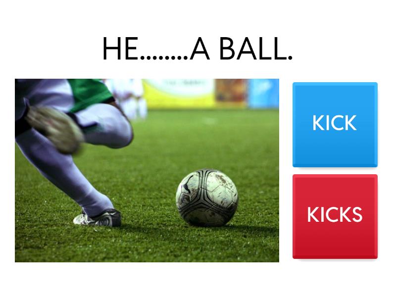1) HE........A BALL. a) KICK b) KICKS 2) HE........SWIMMING. a) LIKES b) LIKE 3) HE ...........BASEBALL. a) PLAYS b) PLAY 4) SHE........... A HORSE. a) RIDES b) RIDE 5) HE..... a) JUMP b) JUMPS 6) SHE....... IN BASKETBALL. a) THROWS A BALL b) BUILDS HOUSES 7) I _________ my school a) likes b) like 8) They ____________ soccer a) play b) plays 9) We _____________ every day a) swim b) swims 10) I _____________ a cat. a) has b) have