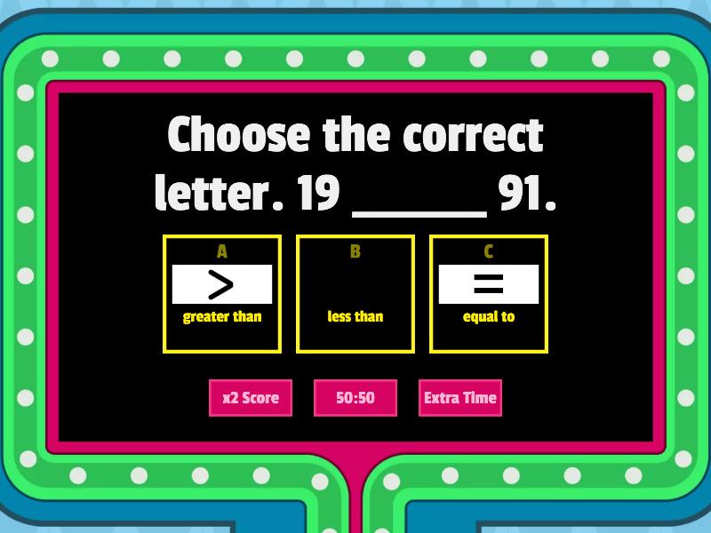 1) Choose the correct letter. 19 ______ 91. a) greater than b) less than c) equal to 2) -86 is ______ 85. What is the correct answer? a) equal to b) less than c) greater than 3) Which number is the opposite of 43 a) -43 b) 0 c) 43 4) Which among the following is correct? a) -4 is greater than -6 b) 3 is less than -4 c) -6 is greater than -4 5) -9 is _______ -7 a) equal to b) less than c) greater than