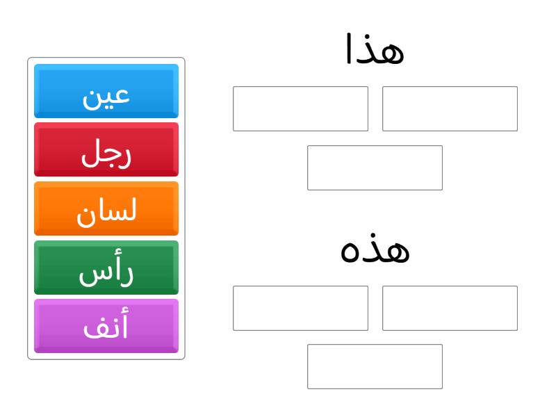 هذا: رأس, لسان, أنف, هذه: رجل, عين,