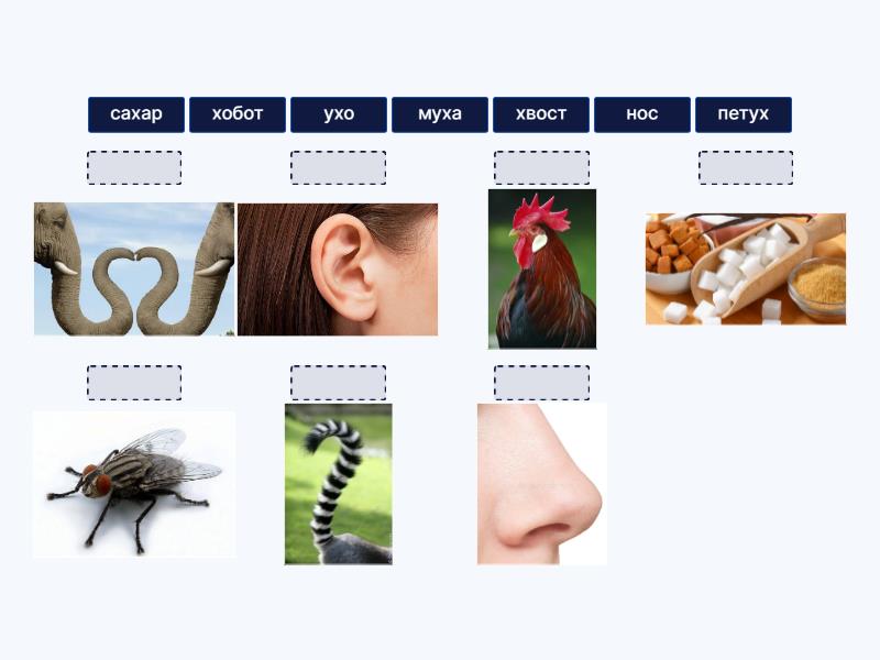 ухо, муха, сахар, нос, хвост, хобот, петух,
