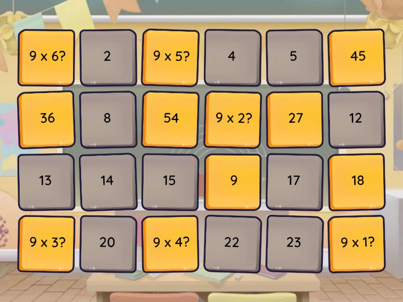 9 - 9 x 1?, 18 - 9 x 2?, 27 - 9 x 3?, 36 - 9 x 4?, 45 - 9 x 5?, 54 - 9 x 6?, 63 - 9 x 7?, 72 - 9 x 8?, 81 - 9 x 9?, 90 - 9 x 10?, 99 - 9 x 11?, 108 - 9 x 12?,