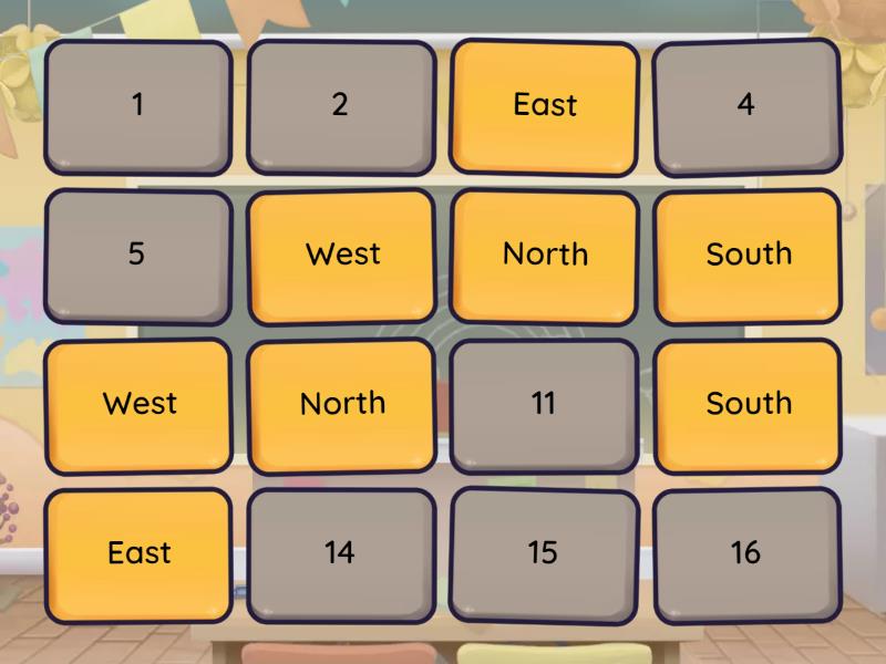 North, South, West, East, Northwest, Southwest, Northeast, Southeast,