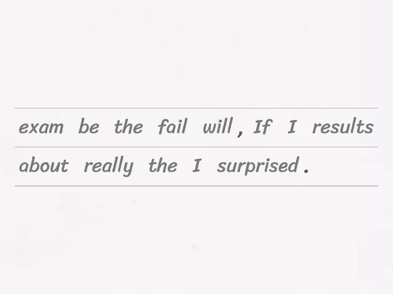 If I fail the exam, I will be really surprised about the results., If she meets my new boyfriend, she will see he is really different from the last one., If we go to Spain this summer, I will be very keen on sunbathing., If the train is delayed, he will be worried about being late for work., If it gets very cold tomorrow, this coat will not be suitable for the weather., If I failed the exam, I would be really surprised., If she had a boyfriend from another country, he would be really different from the last one., If I lived by the sea, I would be very keen on sunbathing., If he missed his train, he would be very worried about arriving late., If I lived in Canada, this coat would not be suitable for the winter weather.,
