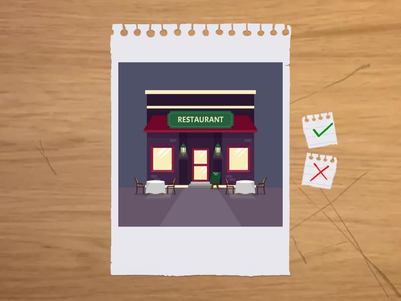 공항, 대사관, 은행, 우체국, 미용실, 화장실, 가게, 병원, 약국, 공원, 극장/영화관, 도서관, 커피숍/카페, 시장, 백화점, 집, 식당, 학교, 회사,