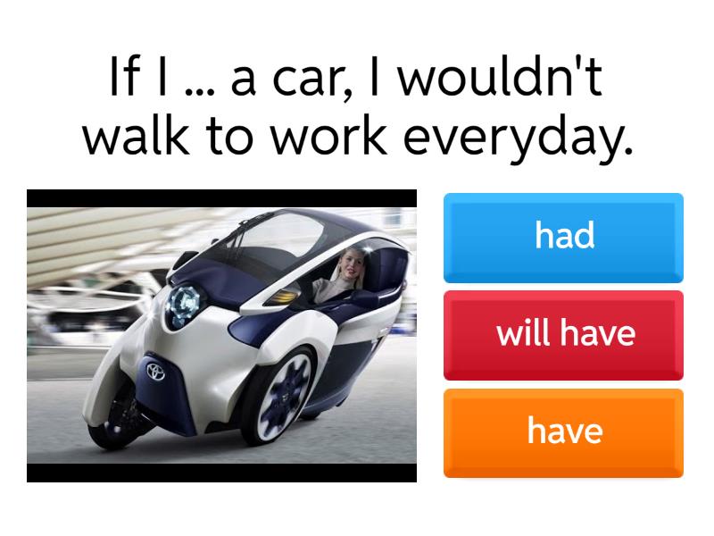 1) If I ... a car, I wouldn't walk to work everyday. a) had b) will have c) have 2) If I won the lottery, I ... a Ferrari. a) buy b) would buy c) bought 3) If I ... you, I would go to the doctor immediately. a) were b) was c) am 4) What would you do if you... a wallet in the street? a) found b) find c) would find 5) I ... forgive Sophie if I were you. a) wouldn't b) won't c) will 6) If I were not busy, I .... to Brenda´s party. a) would go b) will go c) go 7) If I were you, I ... Kevin the truth. a) will tell b) would tell c) could tell 8) What would you do if you … a snake? a) see b) saw c) did see 9) If I ... time, I would help you. a) have b) had c) will have 10) If I were you, I ... this hat. It's nice. a) buy b) bought c) would buy 11) If I ....in English class now, I would be watching TV a) wasn´t b) weren´t c) am not 12) If I met Aladdin´s geenie, I ....... ....him to give me 100 more wishes. a) would ask b) will ask c) ask 13) If I .....the president, I would ask him to end up with corruption. a) meet b) met c) would meet 14) If I got a PS4 for my birthday, I ........the happiest kid on Earth. a) were b) would be c) will be