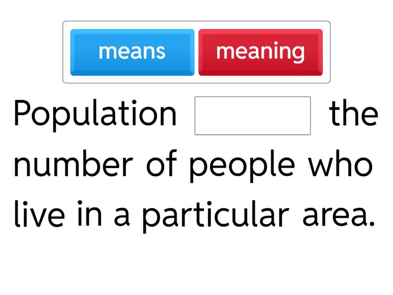 Population ____ the number of people who live in a particular area. The population of the world ____ the same. At the moment it ____ at an increasing rate. In fact, scientists ____ that the world population will increase until 2200, and then stop growing. However, things are not the same in all parts of the world. At present in many Western industrial countries the population ____. This ____ because families are small, and health conditions are good. In developing countries, on the other hand, the population ____ sharply. In Ghana, for example, most families ____ several children. Many children in Ghana ____ from illness, so it is important to have lots of children. They earn money for the family and ____ their parents in old age.