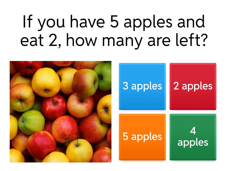 1) If you have 5 apples and eat 2, how many are left? a) 3 apples b) 4 apples c) 2 apples d) 5 apples 2) There are 8 birds on a tree. 3 fly away. How many remain? a) 5 birds b) 6 birds c) 4 birds d) 3 birds 3) You have 7 candies and give 4 to a friend. How many do you have now? a) 3 candies b) 4 candies c) 2 candies d) 5 candies 4) There are 6 ducks in a pond. 2 swim away. How many are left? a) 4 ducks b) 5 ducks c) 3 ducks d) 2 ducks 5) You have 9 balloons and 5 burst. How many are left? a) 4 balloons b) 5 balloons c) 3 balloons d) 6 balloons 6) If there are 10 cookies and you eat 6, how many are left? a) 4 cookies b) 5 cookies c) 3 cookies d) 2 cookies 7) You have 8 pencils and lose 3. How many do you have now? a) 5 pencils b) 6 pencils c) 4 pencils d) 3 pencils 8) There are 7 frogs on a log. 4 jump off. How many remain? a) 3 frogs b) 4 frogs c) 2 frogs d) 5 frogs 9) You have 6 marbles and give 2 away. How many are left? a) 4 marbles b) 5 marbles c) 3 marbles d) 2 marbles 10) If there are 10 fish and 7 swim away, how many are left? a) 3 fish b) 4 fish c) 2 fish d) 5 fish