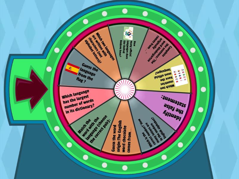 1) Guess the language from the flag ? a) Spanish b) Portuguese c) Italian d) Catalan 2) Which two languages are written with characters (not alphabet letters)? a) Chinese b) English and Japanese c) Russian d) Japanese and Chinese 3) How many official languages does the United Nations have? a) 4 b) 6 c) 10 d) 12 4) Complete the sentence:“The word kindergarten originally comes from…” a) English b) French c) German d) Dutch 5) Which two countries have the most official languages? a) South Africa and India b) SUA and Dutch c) French and English d) English and South Africa 6) Identify the false statement: a) Latin is a dead language. b) Esperanto is an artificial language. c) English has no synonyms. d) Arabic is written from right to left. 7) Which is the correct number?“How many letters are in the modern English alphabet? a) 23 b) 25 c) 26 d) 19 8) Guess the word origin:The English word chocolate comes from… a) German b) Arabic c) Greek d) Spanish 9) Match the word with the language (choose the correct pair): a) “Bonjour” → Italian b) “Hallo” → German c) “Ciao” → French d) “Hola” → Portuguese 10) Which language has the largest number of words in its dictionary? a) English b) German c) Japanese d) Arabic