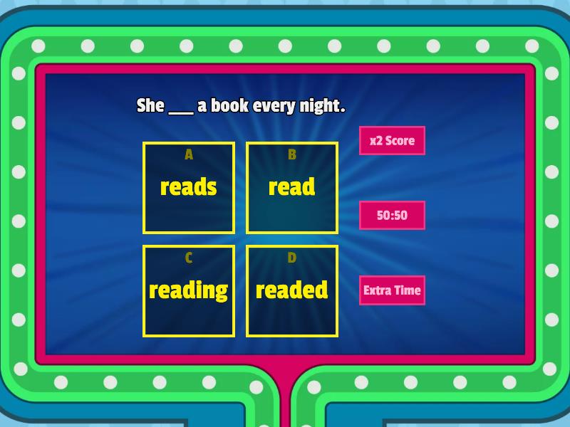 1) She ___ a book every night. a) reads b) read c) reading d) readed 2) The cat ___ on the mat. a) sits b) sit c) sat d) sitting 3) He ___ football on Sundays. a) plays b) play c) played d) playing 4) The dog ___ loudly. a) barks b) bark c) barked d) barking 5) He ___ to music in the evening. a) listens b) listen c) listened d) listening 6) She ___ the piano well. a) plays b) play c) played d) playing 7) He ___ a car to work. a) drives b) drive c) driving d) driven 8) She ___ coffee in the morning. a) drink b) drinks c) drinking d) drank 9) The sun ___ in the east. a) rise b) rises c) rising d) rose 10) The dog ___ loudly at night. a) bark b) barks c) barking d) barked 11) He ___ the guitar well. a) play b) plays c) playing d) played