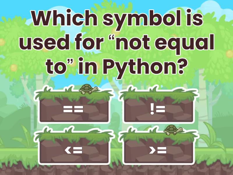 1) Which symbol is used for “not equal to” in Python? a) == b) != c) <= d) >= 2) What will this code print? a) True b) False c) Error d) Nothing 3) Which of these is a valid variable name in Python? a) 2value b) first-name c) first_name d) first name 4) What happens if you forget the colon : in an if statement? a) Python ignores it b) It runs anyway c) SyntaxError d) Nothing happens 5) What does this expression evaluate to? a) True b) False c) Yes d) No 6) What is the default data type of input() in Python? a) String b) Integer c) Float d) Bool 7) Which keyword is used to add an alternative condition in Python? a) else b) else if c) elif d) elseif 8) What is the correct way to write a single-line comment in Python? a) // This is a comment b) /* This is a comment */ c) ''' This is a comment d) # This is a comment 9) What will the following code output? a) 8 b) 53 c) 5 + 3 d) "5 + 3" 10) What is the output of this code? a) A b) B c) C d) Nothing