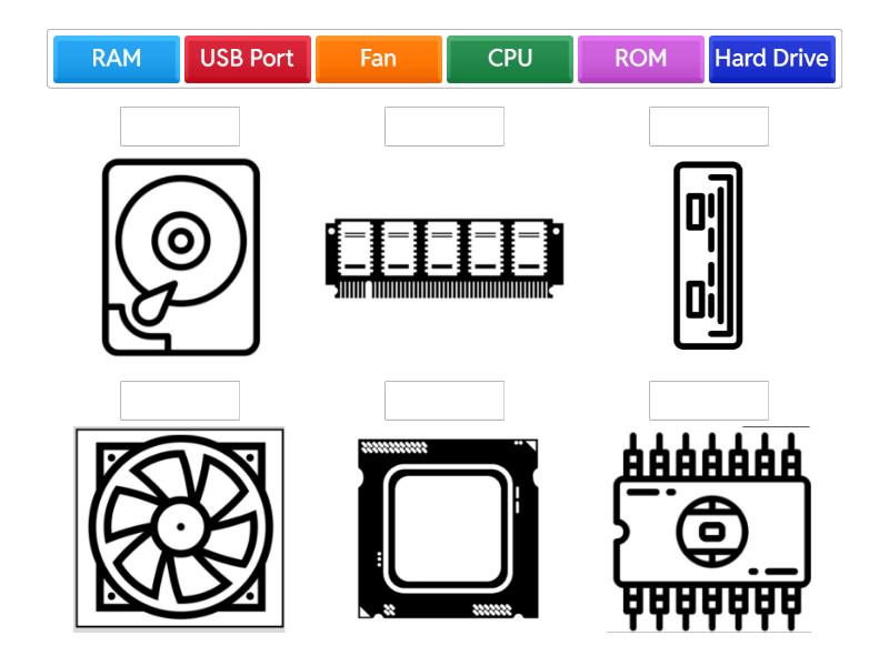 RAM, CPU, ROM, USB Port, Fan, Hard Drive,