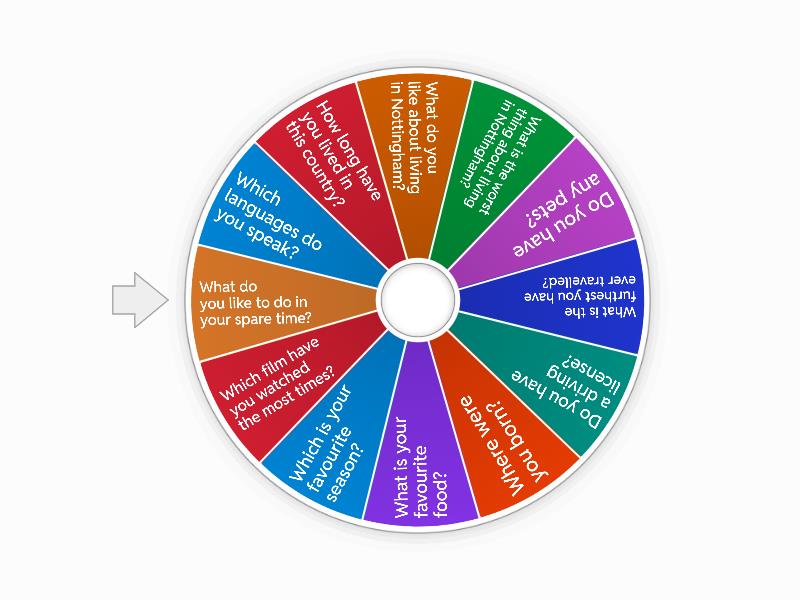 1) Which languages do you speak? 2) How long have you lived in this country? 3) What do you like about living in Nottingham? 4) What is the worst thing about living in Nottingham? 5) Do you have any pets? 6) What is the furthest you have ever travelled? 7) Do you have a driving license? 8) Where were you born? 9) What is your favourite food? 10) Which is your favourite season? 11) Which film have you watched the most times? 12) What do you like to do in your spare time?