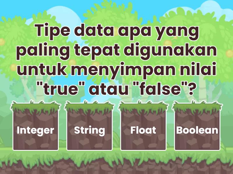 1) Tipe data apa yang paling tepat digunakan untuk menyimpan nilai "true" atau "false"? a) Integer b) String c) Float d) Boolean 2) Manakah dari sintaks berikut yang benar untuk mendeklarasikan sebuah variabel konstanta (yang nilainya tidak bisa diubah) dalam JavaScript? a) var myVar = 10; b) let myVar = 10; c) const myVar = 10; d) define myVar = 10; 3) Dalam pemrograman, apa yang dimaksud dengan looping atau perulangan? a) Proses menjalankan kode secara acak. b) Proses untuk mengeksekusi blok kode yang sama berulang kali sampai kondisi tertentu terpenuhi. c) Proses untuk membuat keputusan dalam kode. d) Proses untuk menyimpan data dalam memori