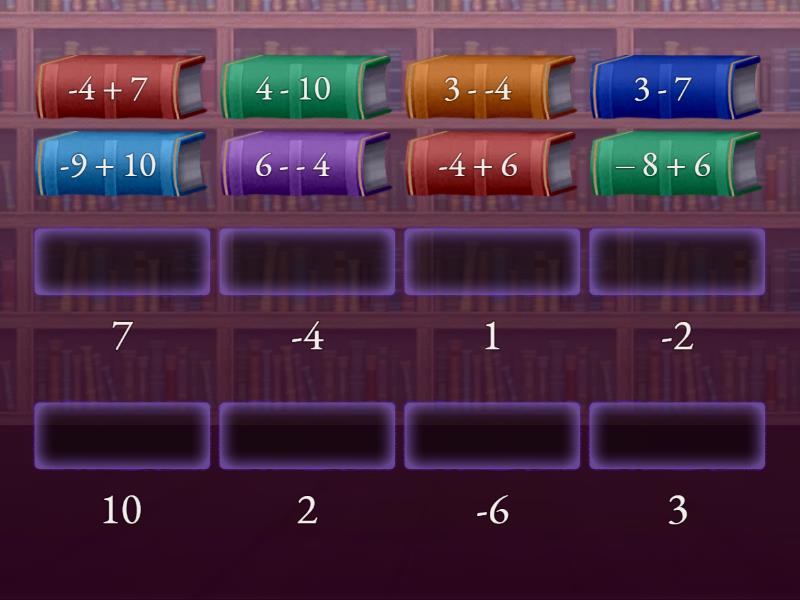 3 - 7 - -4, -4 + 6 - 2, 7 - 10 - -3, -4 + 7 - 3, 4 - 10 - -6, – 8 + 6 - -2, 8 - 13 - -5, -9 + 10 - 1, 8 - 15 - -7, -8 + 17 - 9, 3 - -4 - 7, -3 - -8 - 5, -3 - 6 - -9, -4 – 9 - -13, 6 - - 4 - 10, 3 - - 10 - 13,