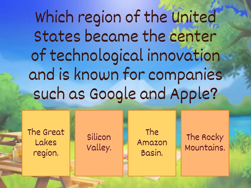 1) Which region of the United States became the center of technological innovation and is known for companies such as Google and Apple? a) The Great Lakes region. b) Silicon Valley. c) The Amazon Basin. d) The Rocky Mountains. 2) What is one of the main benefits of technological innovation? a) It increases pollution in the environment. b) It creates more wars between countries. c) It improves communication and daily life. d) It decreases access to education. 3) Which Latin American scientist discovered the cause of the ozone hole and won the 1995 Nobel Prize in Chemistry? a) César Milstein from Argentina b) Baruj Benacerraf from Venezuela. c) Mario J. Molina from Mexico d) Franklin Chang-Díaz from Costa Rica. 4) Which Latin American country is known for the development of biofuels made from sugar cane? a) Chile b) Brazil c) Argentina d) Canada 5) What is one of the main challenges for scientific and technological development in Latin America? a) Too many universities and laboratories. b) Limited investment and lack of funding for research. c) Excessive access to foreign technology. d) Lack of natural resources. 6) Which country is recognized as a world leader in space exploration, biotechnology, and artificial intelligence? a) The United States b) Japan c) India d) China 7) What does the term “brain drain” refer to? a) Scientists leaving their home countries to find better job opportunities abroad b) The loss of forests and natural resources c) The improvement of international education systems d) The increase of jobs in scientific research 8) Which Latin American country has developed satellite technology, such as the ARSAT project? a) Peru b) Chile c) Argentina d) Mexico 9) What does global interdependence mean in today’s world economy? a) Countries are completely independent and do not need each other. b) Economies depend on one another through trade, industry, and technology exchange. c) Nations produce only what they consume locally. d) Every country uses the same natural resources. 10) Which Asian country is famous for its robotics industry, automotive engineering, and electronic products? a) India b) Japan c) Germany d) South Korea