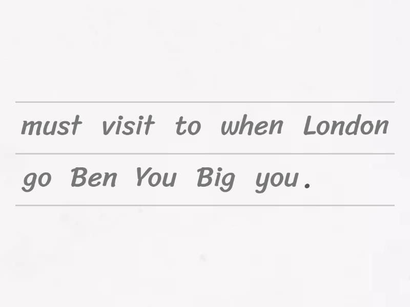 You must visit Big Ben when you go to London., Tourists have to buy an Oyster card to use the Tube., You should try fish and chips near Camden Market., You ought to walk in Hyde Park; it's beautiful., You must see Buckingham Palace during the changing of the guard., You should go shopping on Oxford Street., You have to pay for a black cab before you get out., You must visit The British Museum; it's free., You should drink afternoon tea in a café., You ought to ride The London Eye for the best city view.,