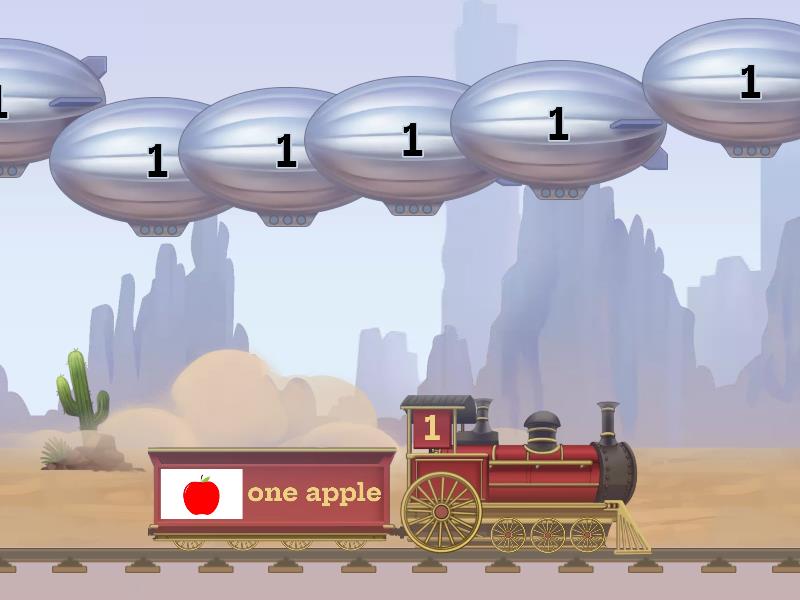1 - one apple, 2 - two dogs, 3 - three trees, 4 - four balls, 5 - five fingers, 6 - six hens, 7 - seven pumpkins, 8 - eight cats, 9 - nine boats, 10 - ten toys, 0 - zero,