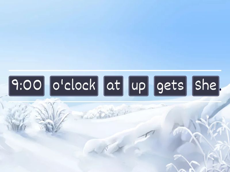 She gets up at 9:00 o'clock., She walks the dog in the morning., She has breakfast on the terrace., She reads a book after breakfast., She cooks lunch at half past one., She has a nap in the afternoon., She goes to the beach at quarter to five., She watches a film in the evening., She has dinner at half past eight., She goes to bed at eleven o´clock.,