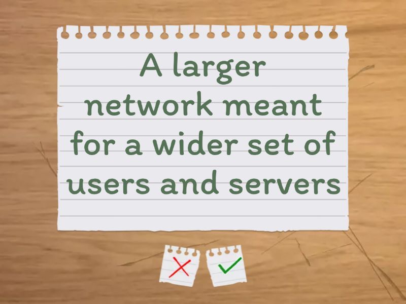 A network that's for a specific area of a specific organization - Local Area Networks (LANs), A larger network meant for a wider set of users and servers - Wide Area Networks (WANs), A system that establish direct connection between computers of the same server - Switch, A private network that is only accessible by the organization's own personnel - Intranet, A network style that is made for small business or personal use - Small Office, Home Office (SOHO), Serves as a multifunctional command center, combining the jobs of a modem, a router, a switch, and a wireless access point - Router, A secure tunnel meant to provide protection while using an unsecure internet connection - Virtual Private Network (VPN), serve as a security gateway that protects the local network and its devices from unauthorized access and cyber threats originating from the internet - Firewall, links smaller LANs into one larger, centralized network. Think of it like a big city that's connecting all those neighborhoods together - Metropolitan Area Network (MAN), a code that is unique to each device, hardcoded and cannot be changed - Media Access Control (MAC), A device that takes the signals from your ISP and translates them into a form your devices can understand - Modem, Devices that can report, state and configuration data and be remotely managed over IP networks - Internet of Things (IOT), a text-based interface between the user and the operating system that accepts input in the form of commands - Command Line Interface (CLI), Specification allowing power to be supplied via switch ports and ordinary data cabling to devices such as VoIP handsets and wireless access points. Devices can draw up to about 13 W (or 25 W for PoE+) - Power over Ethernet (POE), allows wireless or mobile devices to connect to the network via cabled or wireless connection - Access Point (AP),