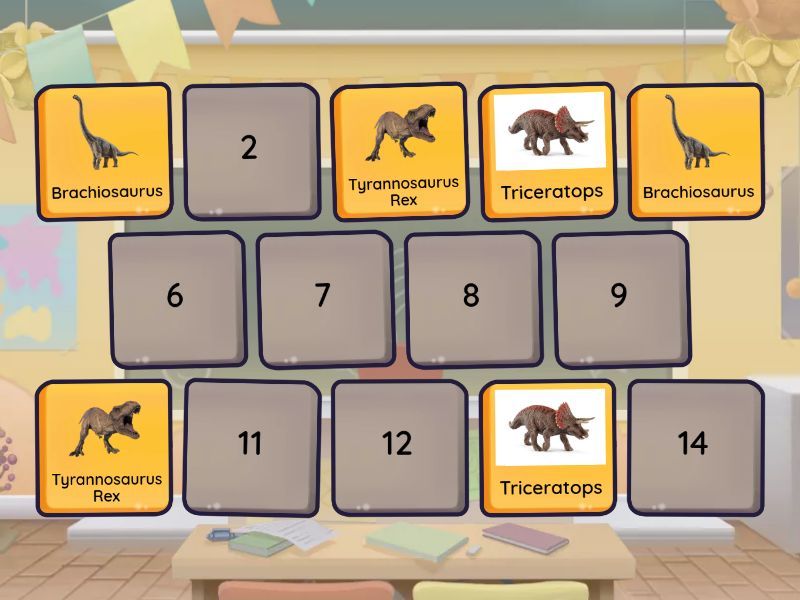 Tyrannosaurus Rex, Brachiosaurus, Triceratops, Ankylosaurus, Pteranodon, Diplodocus, Plesiosaurus,