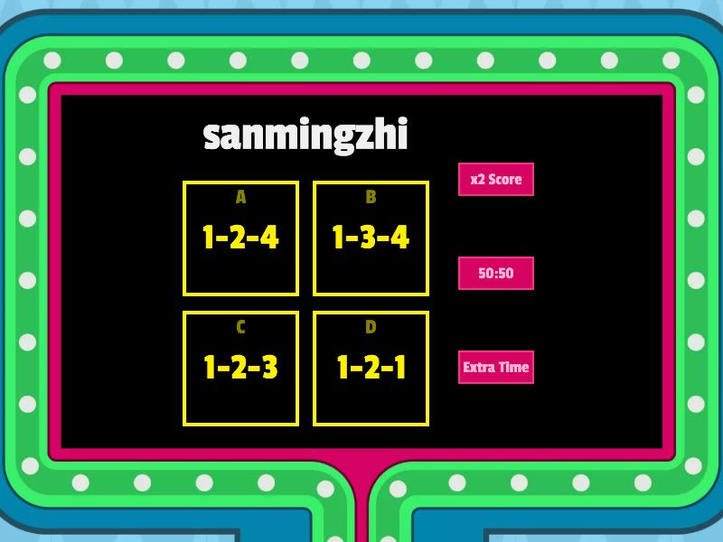 1) sanmingzhi a) 1-2-4 b) 1-3-4 c) 1-2-3 d) 1-2-1 2) zhou a) 2 b) 4 c) 3 d) 1 3) tang a) 1 b) 2 c) 3 d) 4 4) cha a) 1 b) 2 c) 3 d) 4 5) kafei a) 1-4 b) 4-1 c) 1-1 d) 2-2 6) ji-rou a) 1-4 b) 1-2 c) 1-1 d) 1-3 7) tudouni a) 1-4-3 b) 3-4-2 c) 3-4-1 d) 2-4-3 8) niunai a) 1-3 b) 1-2 c) 2-3 d) 4-2 9) cai a) 1 b) 2 c) 3 d) 4