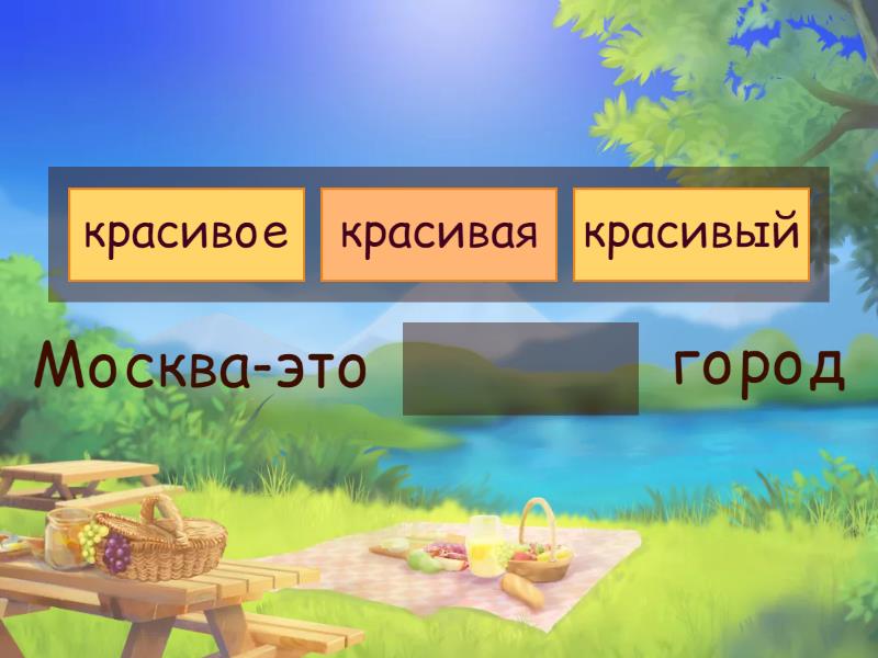 Москва-это ____ город Это ____ студент Где ваше ____ задание? Кто твой ____ писатель? Где твой ____ велосипед? Ты любишь ____ молоко? У тебя есть ____ сестра? Где твоя ____ кружка? Новый год-____ праздник У вас есть ____ платье? Кто твои ____ соседи? Где ваши ____ вещи? Какие ____ у вас пирожки!