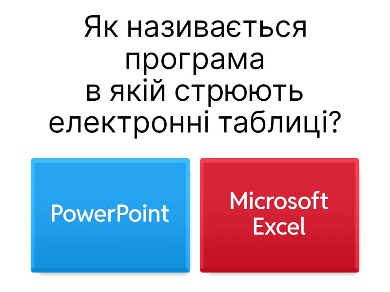 1) Як називається програма в якій стрюють електронні таблиці? a) PowerPoint b) Microsoft Excel 2) Як розшифровується ет? a) Енерго телефон b) Електронна тумба c) Електронна таблиця 3) З чого починається формула в Microsoft Excel? a) * b) — c) + d) - e) : f) = 4) Яким типом програмного забезпечення Microsoft Excel a) Текстовий редактор b) Табличний процесор c) Браузер d) Презентаційний редактор 5) Яке призначенням функції SUM? a) Підрахунок слів b) Додавання чисел c) Сортування даних d) Фільтрація рядків 6) Який тип даних не можна ввести в комірку Excel? a) Текст b) Дата c) Малюнок d) Формула 7) Який результат дасть формула =2+3*4 в Excel? a) 20 b) 14 c) 24 d) 18