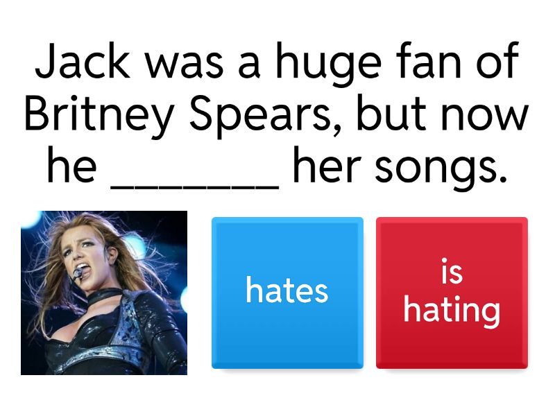 1) Jack was a huge fan of Britney Spears, but now he _______ her songs. a) hates b) is hating 2) The kitchen _________ like you burnt something. a) smells b) is smelling 3) I can't live here anymore. I _______ about moving to another city. a) think b) am thinking 4) My granny _______ the roses I brought her in the morning. a) smells b) is smelling 5) People _______ high education prestigious. a) consider b) are considering 6) We couldn't stand opera in our childhood, but now we __________ going to Mariinsky Theater. a) like b) are liking 7) I _______ Michael, but he can't see me. a) see b) is seeing 8) I'm sorry. You can't talk to Sara, she _______ lunch with her editor. a) has b) is having 9) Oh, now I __________ him. He is a famous rock star. a) recognize b) am recognizing 10) Look! The chef _________ the soup. a) tastes b) is tasting 11) Paul is normally very kind and thoughtful, but today he _________ so rude to me! a) is b) is being 12) I believed him, but now he _______ to be a cheater. a) appears b) is appearing 13) She _________ Pauline tonight at 7-00. a) sees b) is seeing 14) It _________ good. a) looks b) is looking 15) He _____ a house and 2 cars. a) has b) is having