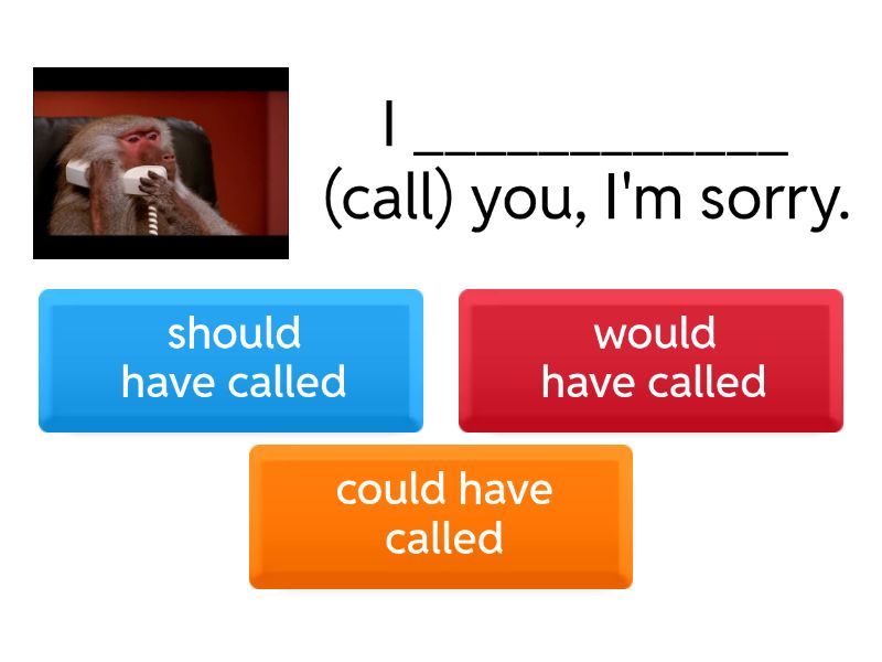 1) I ____________ (call) you, I'm sorry. a) should have called b) would have called c) could have called 2) You must be really glad that you came. You ______ (meet) so many new business contacts if you hadn't come.  a) would have met b) should not have met c) would not have met d) could not have met  e) should have met 3) I _____ (help) you if you had asked me because I had the information. a) would have helped b) could have helped c) could not have helped d) should have helped e) should not have helped 4) I'm so glad you came over to speak to me, I _______ (recognise) you otherwise. a) would have recognised b) could not have recognised c) should not have recognised d) would not have recognised 5) The meeting went really well. In fact, it ________ (go) better. a) should not have gone b) could not have gone c) could have gone d) would not have gone 6) You ________ (say) that in the meeting, because now they will give all the work to us. a) should have said b) would not have said c) should not have said d) could not have said 7) I ________ (tell) you about it sooner, but I have only just found out myself. a) would have told b) would not have told c) could have told d) should have told 8) When I was young, I ________ (be) a professional dancer, but I wanted to do other things with my life. a) would have been b) should have been c) could not have been d) could have been