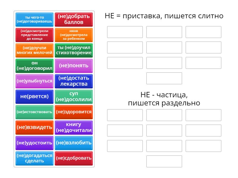 НЕ = приставка, пишется слитно: (не)сдобровать, (не)взвидеть, (не)здоровится, (не)взлюбить, (не)истовствовать, ты чего-то (не)договариваешь, (не)доучли многих мелочей, няня (не)досмотрела за ребенком, суп (не)досолили, (не)добрать баллов, НЕ - частица, пишется раздельно: не(рвется), (не)достать лекарства, (не)понять, (не)удостоить, (не)улыбнуться, он (не)договорил, ты (не)доучил стихотворение, (не)досмотрели представление до конца, книгу (не)дочитали, (не)догадаться сделать,