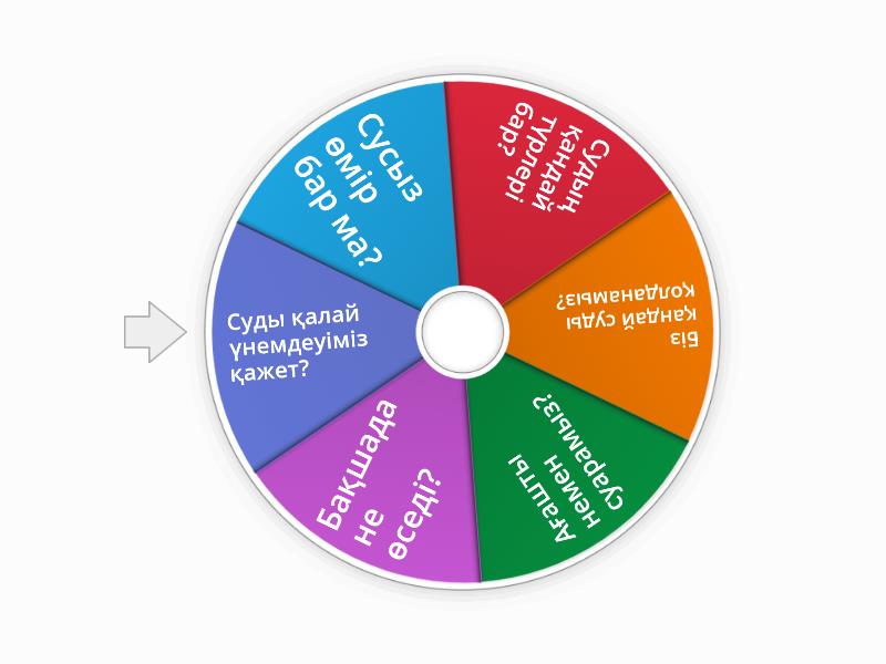 Сусыз өмір бар ма?, Судың қандай түрлері бар?, Біз қандай суды қолданамыз?, Ағашты немен суарамыз?, Бақшада не өседі?, Суды қалай үнемдеуіміз қажет?.