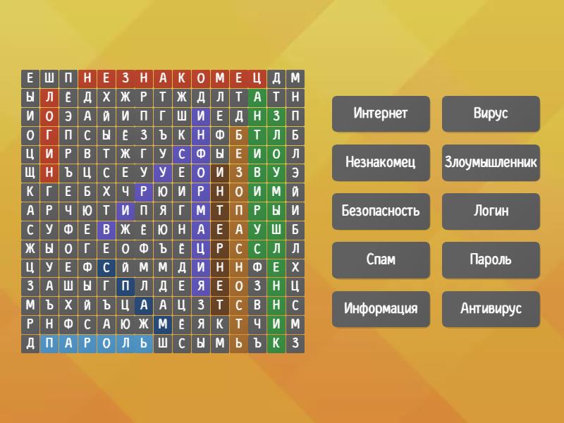 Антивирус - Антивирус, Информация - Информация, Логин - Логин, Пароль - Пароль , Интернет  - Интернет, Спам - Спам, Безопасность - Безопасность , Злоумышленник - Злоумышленник, Вирус - Вирус, Незнакомец - Незнакомец,