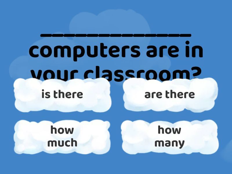 1) _____________ computers are in your classroom? a) is there b) are there c) how much d) how many 2) _________________ any milk? a) is there b) are there c) how much d) how many 3) _____________ coffee would you like? a) is there b) are there c) how much d) how many 4) _____________ any tomatoes in the fridge? a) is there b) are there c) how much d) how many 5) _____________ water is there? a) is there b) are there c) how much d) how many 6) _____________ a shop near your house? a) is there b) are there c) how much d) how many 7) _____________ any bread? a) is there b) are there c) how much d) how many 8) _________ cousins have you got? a) is there b) are there c) how much d) how many 9) _____________ a website I can use? a) is there b) are there c) how much d) how many 10) ___________ water do you drink every day? a) is there b) are there c) how much d) how many 11) ______________ time have we got? a) is there b) are there c) how much d) how many 12) ____________ any vegetables on the pizza? a) is there b) are there c) how much d) how many