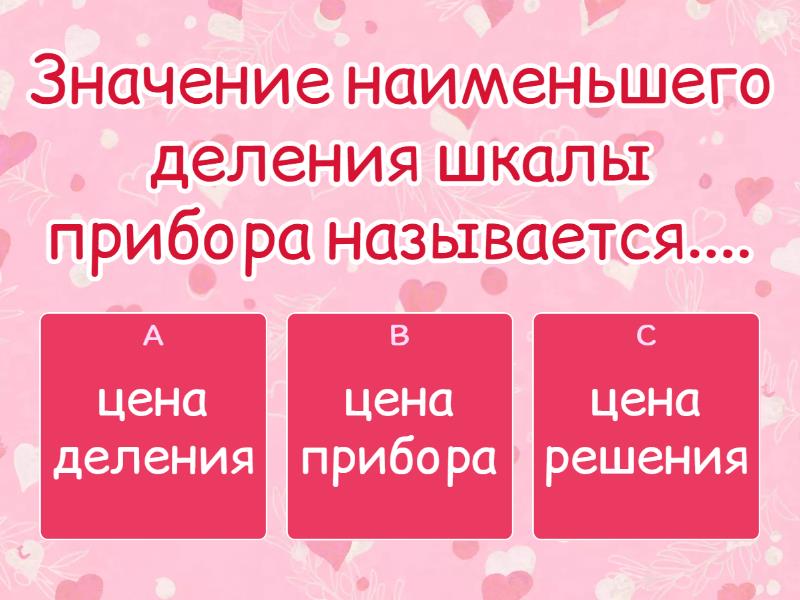 1) Значение наименьшего деления шкалы прибора называется.... a) цена деления b) цена прибора c) цена решения 2) Какой прибор измеряет массу тела? a) весы b) линейка c) спидометр d) термометр e) часы 3) Чемы равна цена деления шкалы термометра, изображенного на рисунке....°С/дел a) 0,5 b) 1 c) 2 d) 5 e) 10 4) Какое значение температуры показывает термометр на рисунке? a) 25 °С b) 28°С c) 28,5°С d) 29°С e) 29,5°С 5) Определи цену деления линейки, если между штрихами со значениями 4 см и 5 см имеются два деления a) 1 мм/дел b) 2 мм/дел c) 5 мм/дел d) 1 см/дел e) 2 см/дел 6) Цена деления мензурки 2 мл/дел. На сколько делений поднимется уровень воды в мензурке, если в нее долить 40 мл воды? a) 2 b) 20 c) 40 d) 80 e) 100 7) Определите объем куба V, ребро которого а=7см a) 343 b) 49 c) 21 d) 14 e) 700