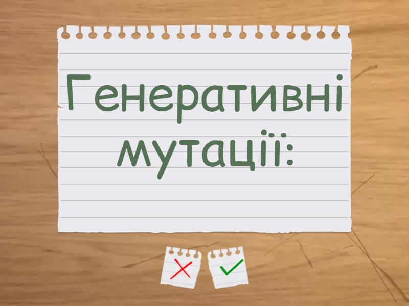 Неспадкова мінливість - це ... - зміни які не передаються наступним поколінням, Комбінативна мінливість - Різне поєднання алельних генів., Генеративні мутації: - Виникають у статевих клітинах, успадковуються при статевому розмноженні, проявляються у нащадків., Трансверсія - Зміна пари нуклеотидів на іншу., Мутаційна мінливість - Зміни генотипу внаслідок мутацій., Делеція - Втрата хромосомою певної ділянки, За походженням мутації: - Спонтанні та індуковані, Анеуплоїдія - Зміна числа хромосом окремих пар., Мінливість це ... - здатність організмів змінювати свої ознаки і властивості., За рівнем виникнення мутації: - Геномні, хромосомні та генні., Спадкова мінливість - це ... - мінливість, яка характеризується зміною генотипу. Зміни успадковуються.,