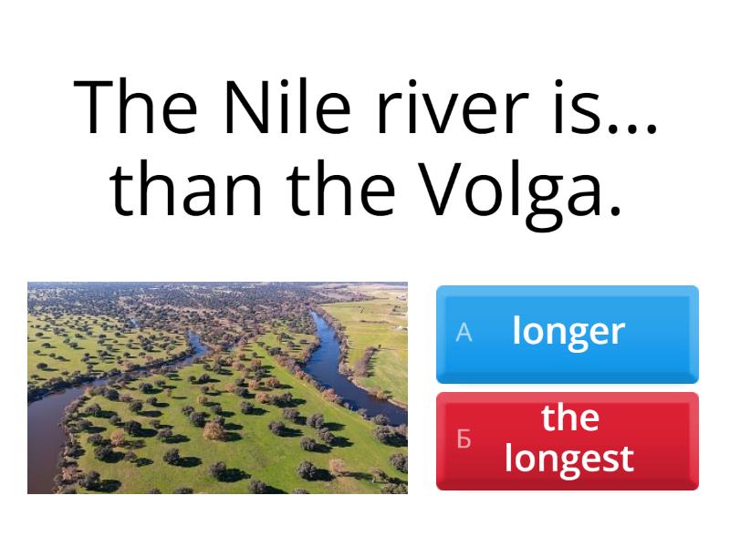 1) The Nile river is... than the Volga. a) longer b) the longest 2) My brother is ... in my family. a) the youngest b) younger 3) Mark's homework is ... Gena's homework.  a) worse b) the worst c) bader 4) The mouse is ... animal. a) the biggest b) smaller c) the smallest 5) The red pencil is ... than the blue pencil. a) the longest b) longer 6) My granfather is ... in my family. a) the oldest b) older 7) The elephant is ... than baby elephant. a) the biggest b) bigger c) biger 8) The girl is ... than the boy. a) close b) the closest c) closer 9) The red scarf is ... . a) the shortest b) shorter 10) Petya is ... football player than Gosha. a) better b) the best c) gooder 11) The elephant is ... than the butterfly a) heaviest b) heavier c) heavy 12) The hippo is ... than the giraffe. a) the shortest b) shorter c) longer 13) The trees are ... a) the furthest b) further c) the closest