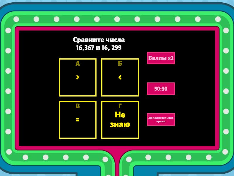 1) Сравните числа 16,367 и 16, 299 a) > b) < c) = d) Не знаю 2) 2,05 = a) 2,0050 b) 2,5000 c) 2,0500 d) 2,50 3) 2,5678> a) 2,5679 b) 2,3678 c) 2,7689 d) 2,8794 4) Какую цифру нужно поставить вместо звездочки, чтобы получилось верное неравенство 16, *568>16,8965 a) 4 b) 0 c) 8 d) 9 5) При каком х верно неравенство 2,7<x<2,8 a) 2,75 b) 2,5 c) 2,85 d) 2,075 6) Выразите в килограммах и граммах 52,233 a) 522 кг 33 гр b) 52 кг 233 гр c) 5 кг 2233гр 7) Между какими двумя соседними натуральными числами на координатной прямой заключена десятичная дробь 5,8ь a) 5 и 6 b) 5 и 8 c) 5,8 и 6