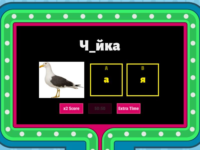 1) Ч_йка a) а b) я 2) Щ_ка a) ю b) у 3) Ч_шка a) я b) а 4) Площ_дка a) а b) я 5) Зайч_та a) я b) а 6) Пищ_ a) а b) я 7) Печ_ть a) а b) я 8) Ш_ны a) ы b) и 9) Ж_раф a) и b) ы 10) Малыш_ a) ы b) и