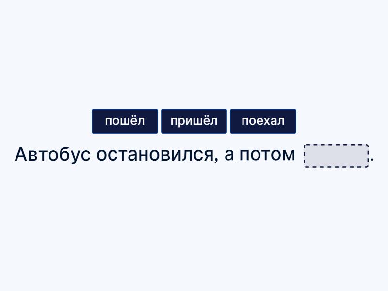 Омар оделся и ____ на улицу. На улице я встретил друга, и мы ____ в магазин вместе. Вчера я была в гостях, поэтому ____ домой поздно. Завтра мы тоже ____ в гости. Я ____ на урок в 8.00, а мой друг опоздал, потому что проспал. Когда мама ____ домой, было уже 19.00. После работы врач закроет кабинет и ____ домой. Через месяц я ____ на родину. Мы ____ в Ростов в ноябре. Скоро ____ мой друг из Индии. Я хочу ____ в Москву. Автобус остановился, а потом ____. В будущем году мой брат ____ ко мне. Когда он ____ к нам в гости?