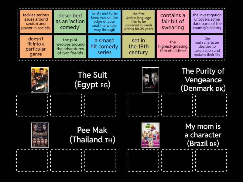 The Suit (Egypt 🇪🇬): described as an 'action comedy', the plot revolves around the adventures of two friends, the first Arabic-language film to be screened in Saudi Arabia for 35 years, The Purity of Vengeance (Denmark 🇩🇰): the investigation uncovers some dark parts of the country's history, twists and turns keep you on the edge of your seat the whole way through, tackles serious issues around sexism and power in society, Pee Mak (Thailand 🇹🇭) : the highest-grossing film of all-time, doesn't fit into a particular genre, set in the 19th century, My mom is a character (Brazil 🇧🇷): the main character decides to take action and reclaim their life, contains a fair bit of swearing, a smash hit comedy series,