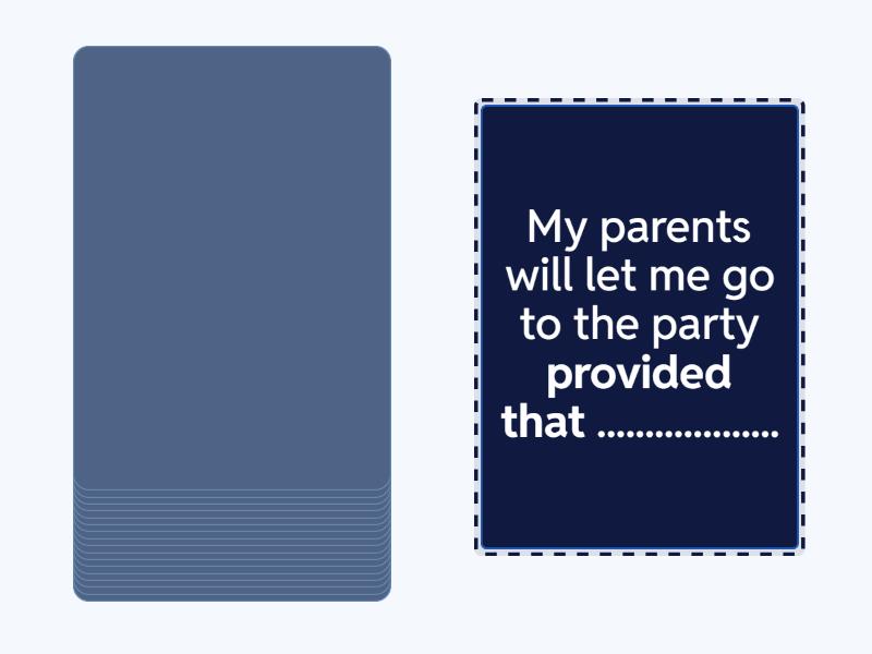 I will move out from my parents as soon as ........................., If I get bored .............., I will agree to go to the party provided that ........................, I won't go to school if ............................, Provided that I have so free time at the weekend, .............................., I will be really happy when ........................, I won't be able to make enough money unless ........................, I will improve my English as long as ........................., When I feel stressed ......................., The children won't go to sleep until ................, When I'm 75 .................., As soon as I turn 18 years old ..................... , My parents will let me go to the party provided that ..................., Social Media sites will be popular as long as ................... , I will do my homework as soon as ..................., I won't get a new phone until ................, As soon as I get home today ..................., You will find the love of your life if ..................