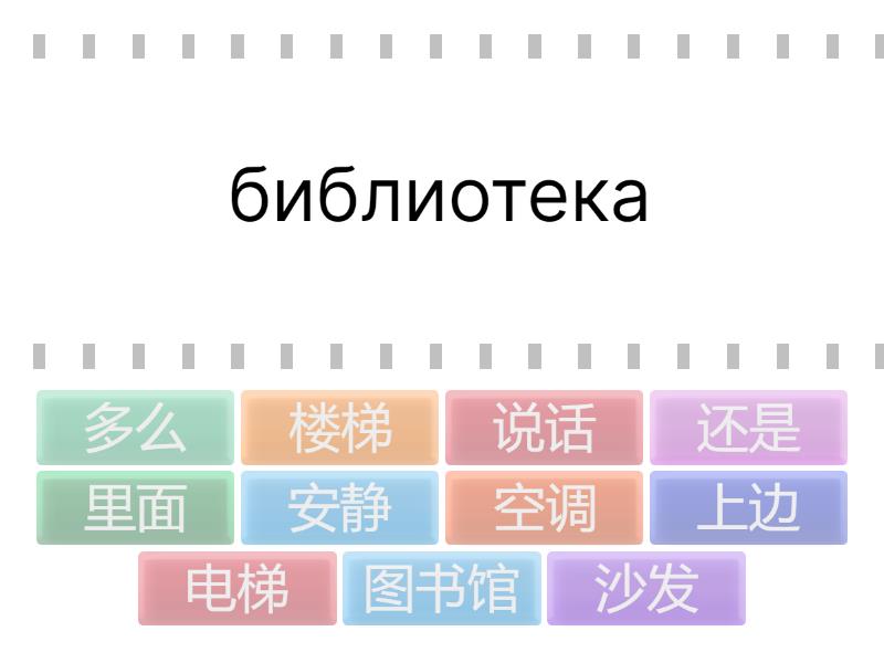 图书馆 - библиотека, 电梯 - лифт, 楼梯 - лестница, 里面 - внутри, 还是 - или, 上边 - наверху, верх, 多么 - до чего, насколько, 空调 - кондиционер, 沙发 - диван, 安静 - тихий, спокойный, 说话 - разговаривать,
