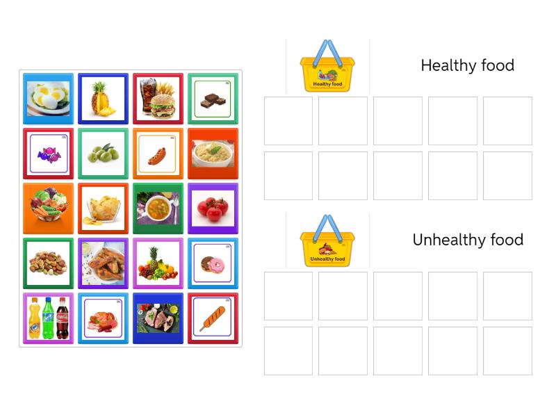 Healthy food: , , , , , , , , , , Unhealthy food: , , , , , , , , , ,