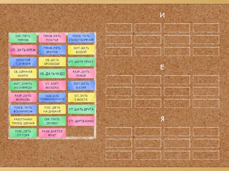 И: РАЗВ...ВАТЬ ПРОМЫШЛЕННОСТЬ, СКР...ПЕТЬ ПЕРОМ, СЛ...ЗАТЬ КРЕМ, СП...ШИТЕ ТЕКСТ, УВ...ДАТЬ ЧУДО, ПРИМ...РЯТЬ ВРАГОВ, ПОС...ДЕТЬ НА ДИВАНЕ, ЗАП...ВАТЬ ВОДОЙ, УТ...ХАЕТ МУЗЫКА, ЗОЛОТОЕ Т_СНЕНИЕ, Е: РАЗВ...ВАЕТСЯ ФЛАГ, РАЗР...ДИТЬ МОРКОВЬ, СКР...ПИТЬ ДРУЖБУ , СЛ...ЗАТЬ С МОСТА, СП...ШИТ В КИНО, ПРИМ...РЯТЬ ПЛАТЬЕ, ПОС...ДЕТЬ ОТ ГОРЯ, ПОСВ...ТИТЬ ФОНАРИКОМ, ЗАП...ВАТЬ В ХОРЕ, УТ...ШАТЬ ДРУГА, РАБОТНИКИ ПРОСВ...ЩЕНИЯ, ВЫТ_СНИТЬ ИЗ ОЧЕРЕДИ, Я: РАЗР...ДИТЬ РУЖЬЁ, УВ...ДАТЬ БЕЗ ВОДЫ, ПОСВ...ТИТЬ СТИХОТВОРЕНИЕ, СВ...ЩЕННАЯ КНИГА,