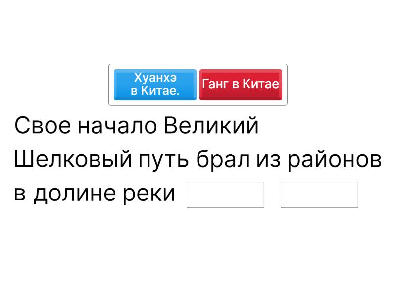 Свое начало Великий Шелковый путь брал из районов в долине реки ____ ____ Общая протяженность Великого Шелкового пути составляла около ____ ____ Основным товаром был ____ ____ Северная ветвь пути пролегала через ____ ____ Тараз и Испиджаб являлись основными____ ____